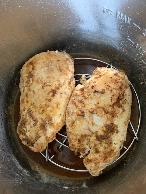 The ever wonderful Instant Pot is used to cook 2 chicken breasts, which are then shredded easily in my stand mixer. Leftover rotisserie chicken is also great in this recipe.