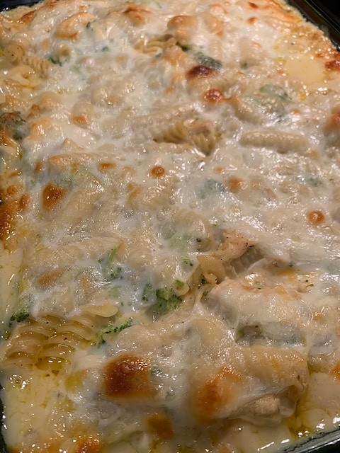 Filled with a blend of delicious cheeses, chicken, pasta, and more, it’s one of the easiest casseroles I make.