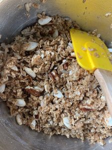 Please wait until the granola is completely cool before breaking apart. Otherwise, there will be no clusters! Store in an air tight container.