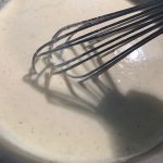 • Whisk in garlic, parmesan, pepper, and salt.